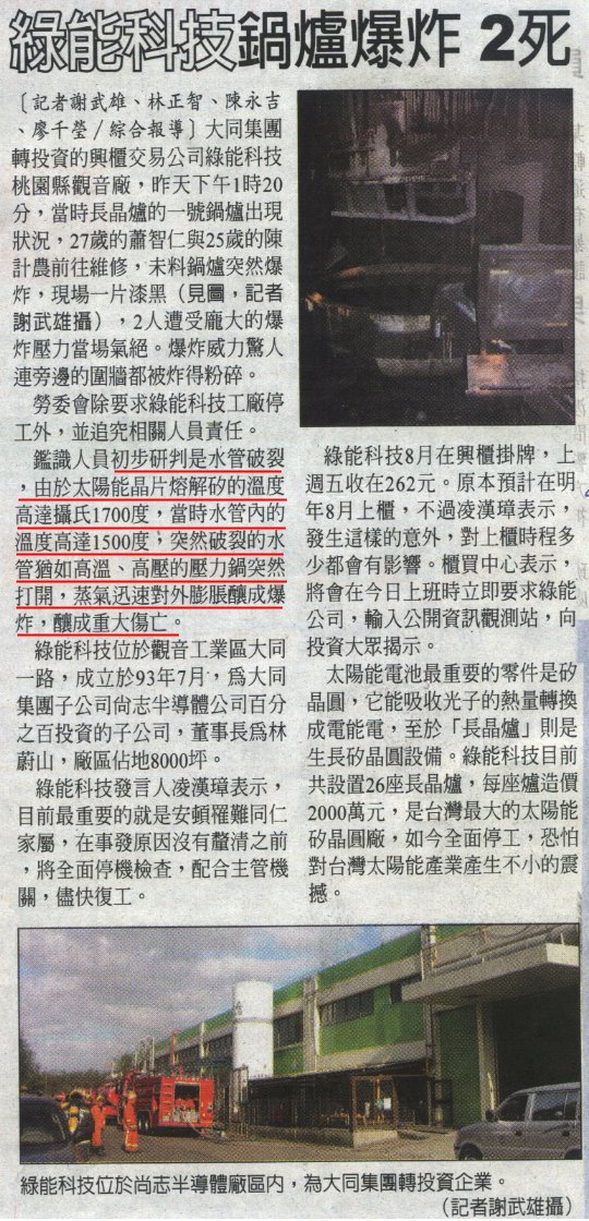 | 2006/12/17桃園縣觀音鄉工廠鍋爐爆炸事件(2006/12/18自由時報剪報資料) |